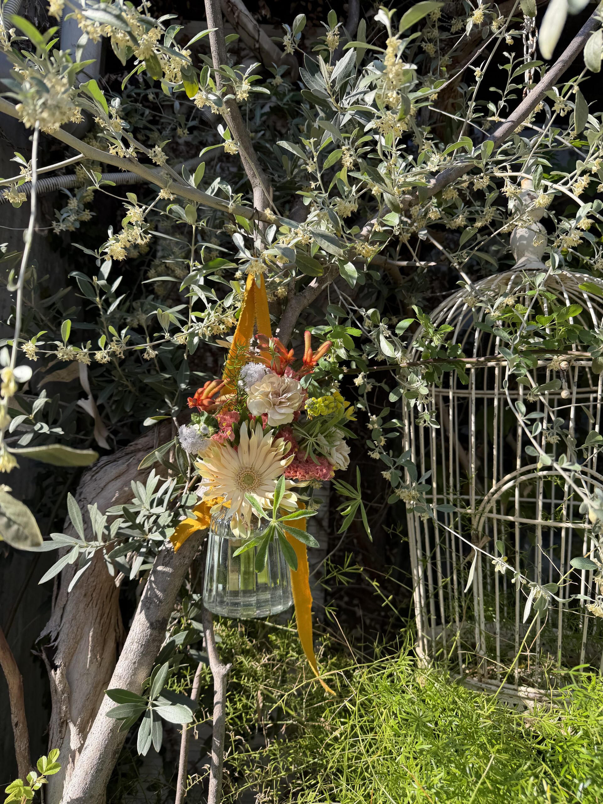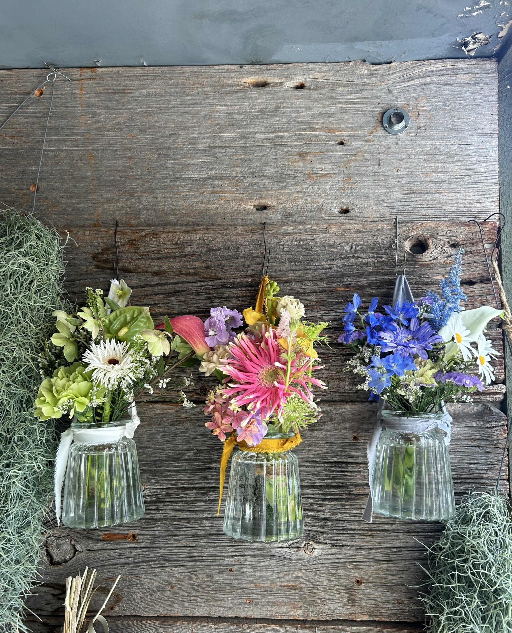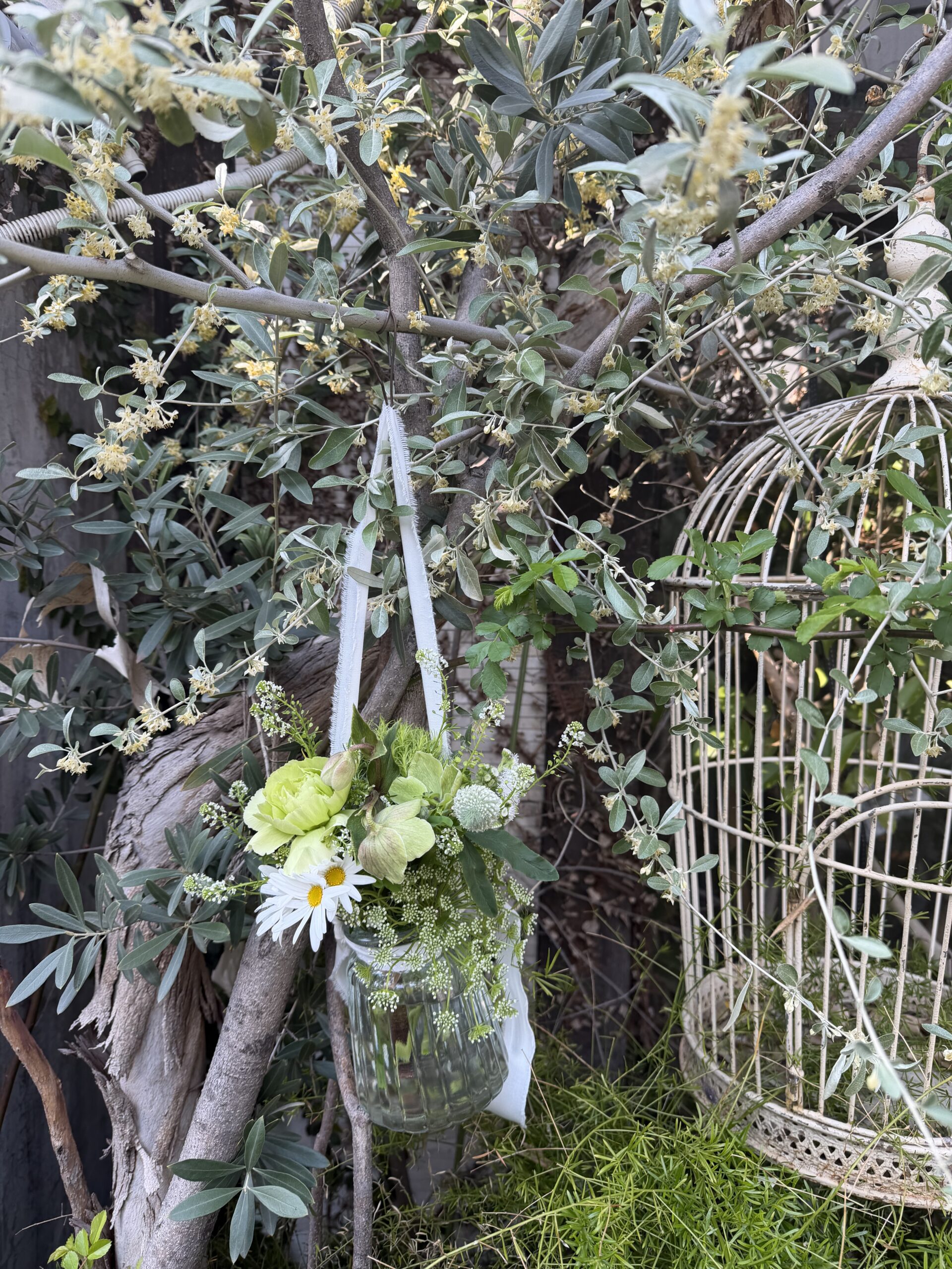 ミニ花瓶に壁に引っ掛けれるリボンが付いており